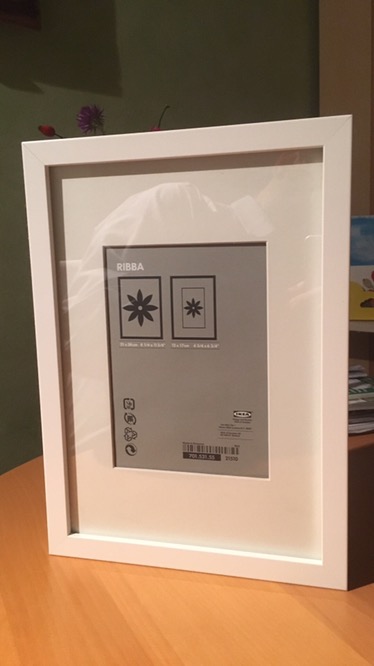 Das Erste war RIBBA im Format A4 von IKEA. Wir hatte auch noch einen größeren Rahmen hier gehabt. Aber bei dem sah die LEGO-Figur etwas verloren aus.