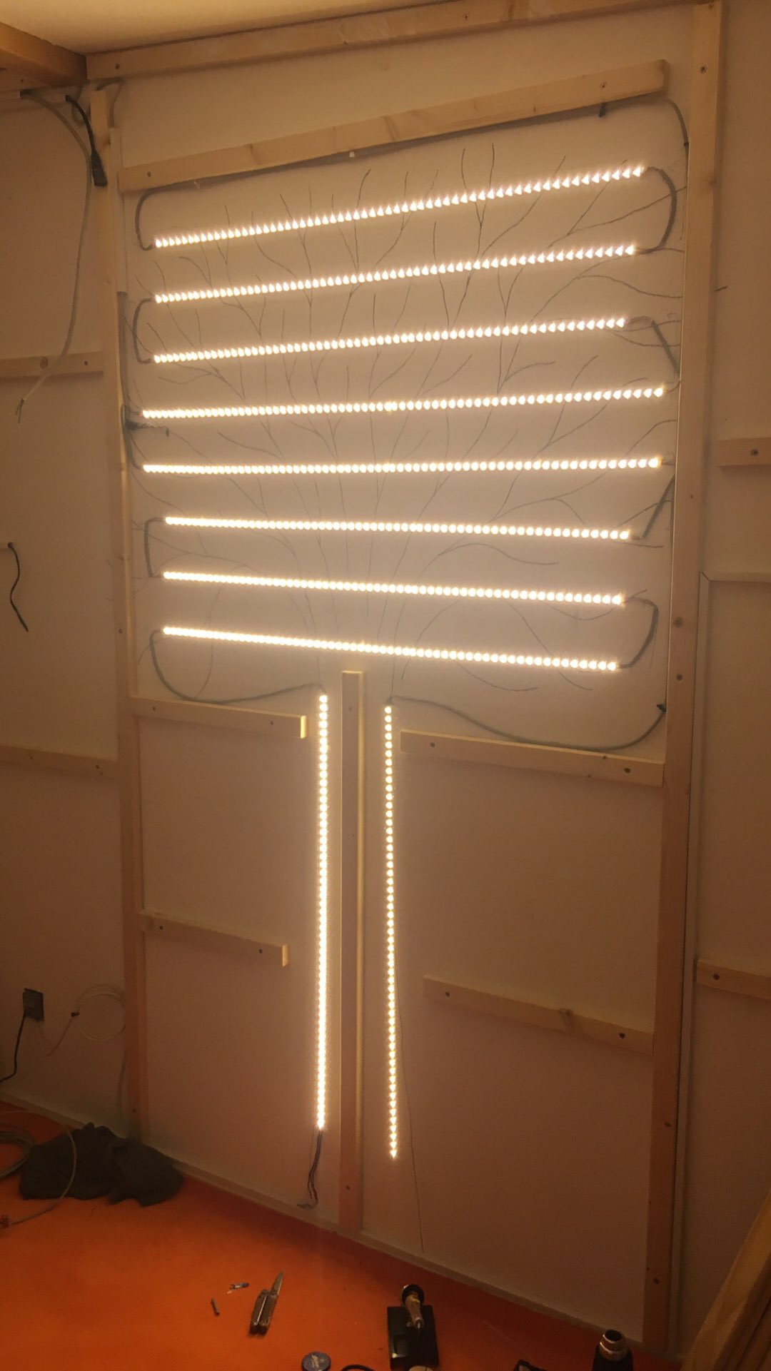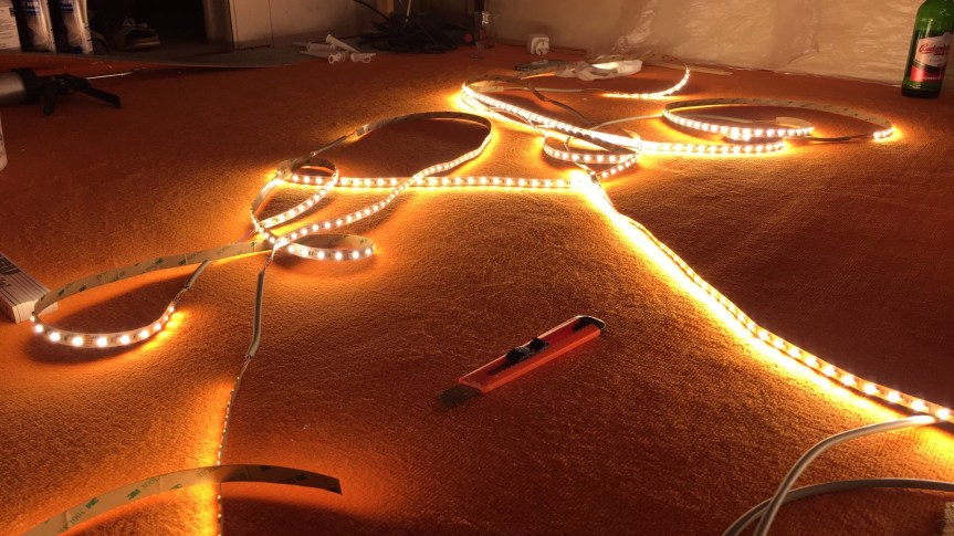 Bisher habe ich nur vom Baufortschritt im ehemaligen Kinderzimmer geschrieben. Die LED-Wand und das Profilholz waren schon Thema. Wobei natürlich die leuchtende Wand mehr im Fokus steht.