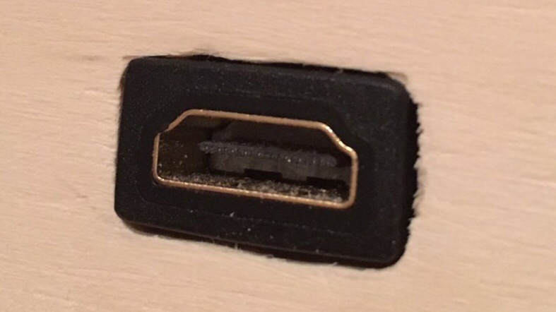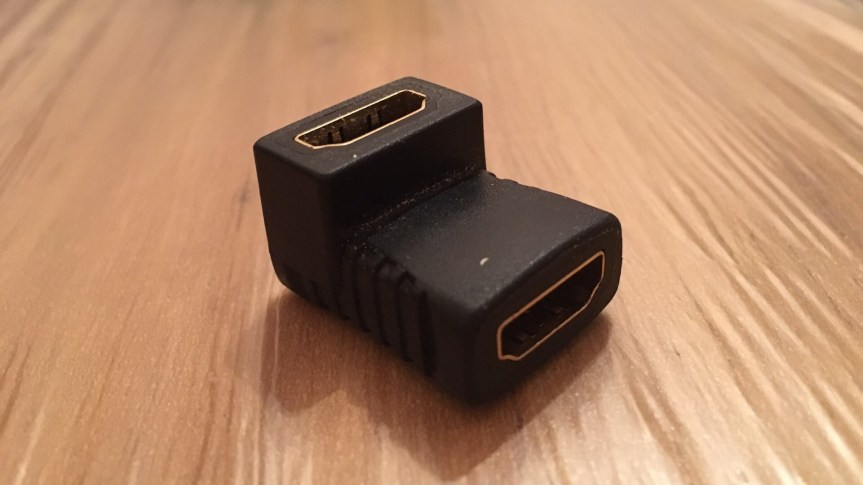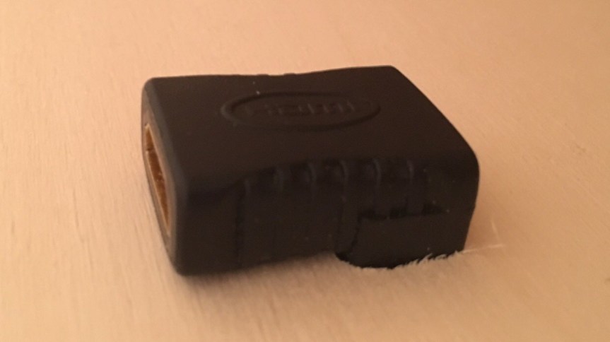 Die Lösung war eine simple HDMI-Eckkupplung für 4 Euro und ein paar Zerquetschte.