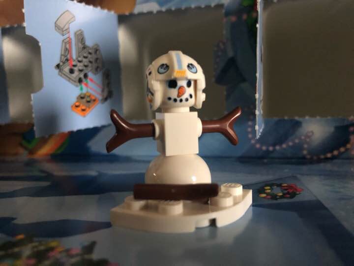 Jetzt ist auch das letzte Türchen geöffnet. Wo ist die Zeit nur hin? Dahinter verbarg sich ein Schneemann. Nach dem, der Snow Trooper (aus dem 2016er Kalender), wurde dieser offensichtlich von den Rebellen gebaut. Immerhin hat er den Helm von General Merrick auf.