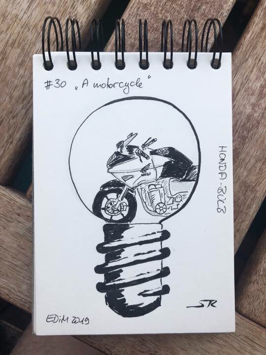 Ich habe also versucht, mein eigenes Motorrad zu zeichnen. Ehrlich gesagt, bin ich nicht so richtig zufrieden mit dem Ergebnis.