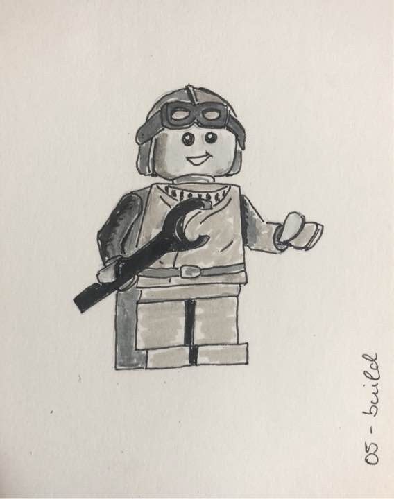 Eine Zeichnung zum Thema „bauen“ sollte in der Welt von Lego eigentlich kein Problem sein. Da ich mich jedoch auf die Minifiguren konzentrieren wollte, musste ich doch kurz nachdenken.