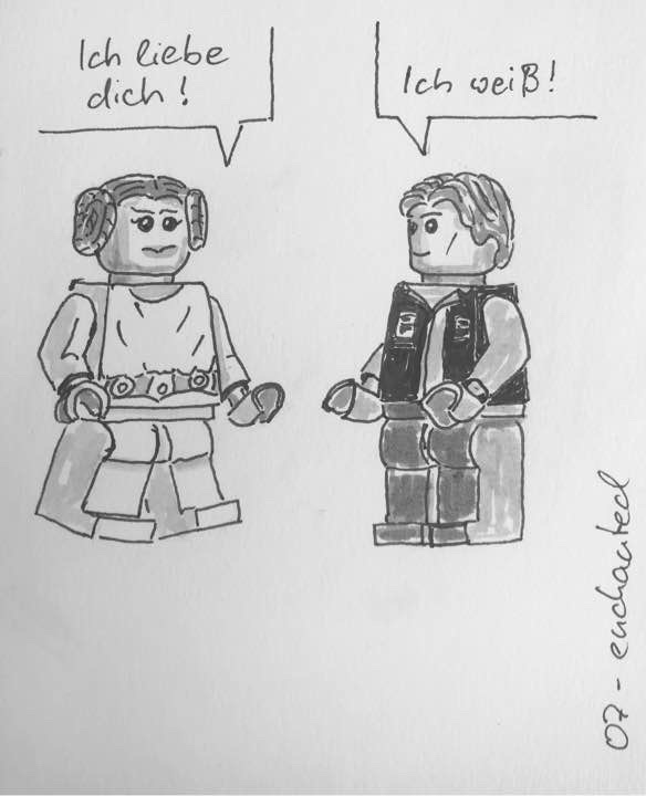 Veröffentlicht am 7. Oktober 2019 von StephanVeröffentlicht in Lego, Minifiguren, StarWars, Tusche, ZeichnungVerschlagwortet mit Han Solo, Inktober, Lego, Leia, Liebe, Minifigur, Minifiguren, StarWars, Tusche, verzaubert, zeichnen, Zeichnung. 1 Kommentar