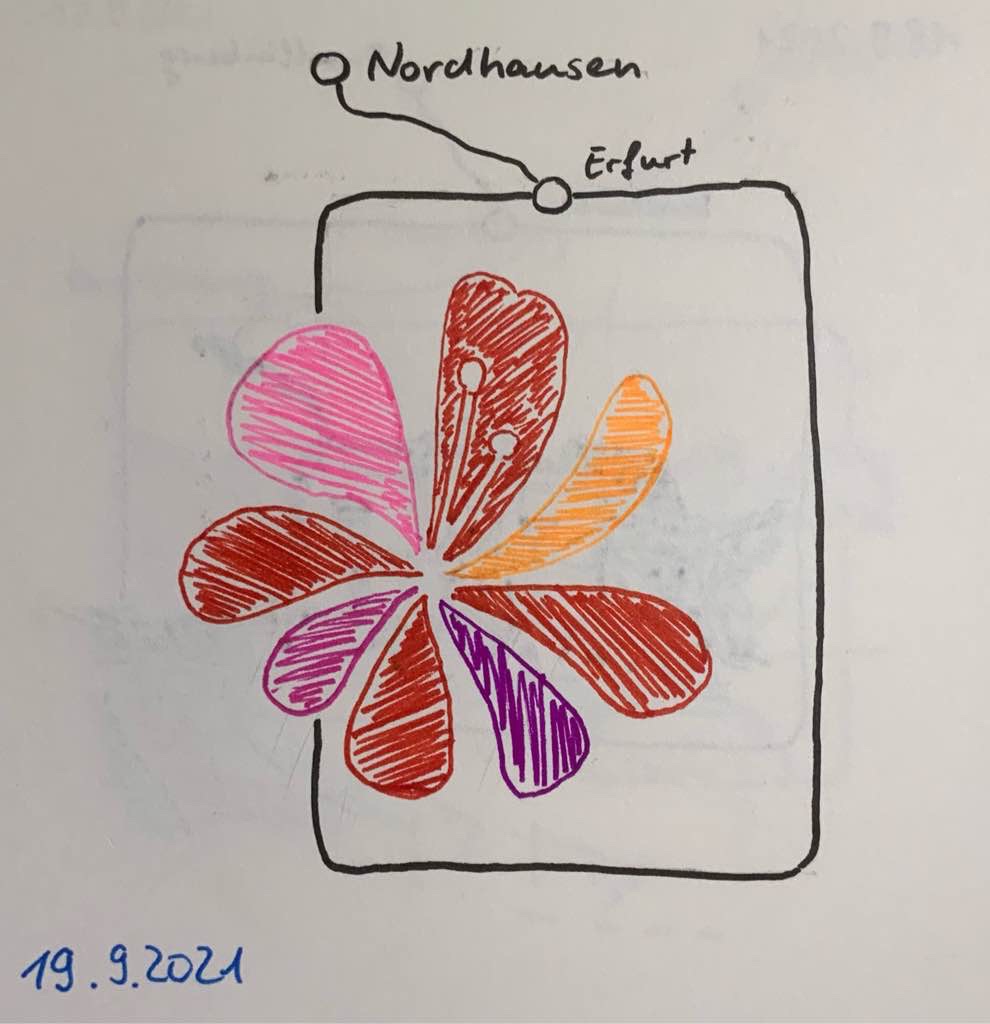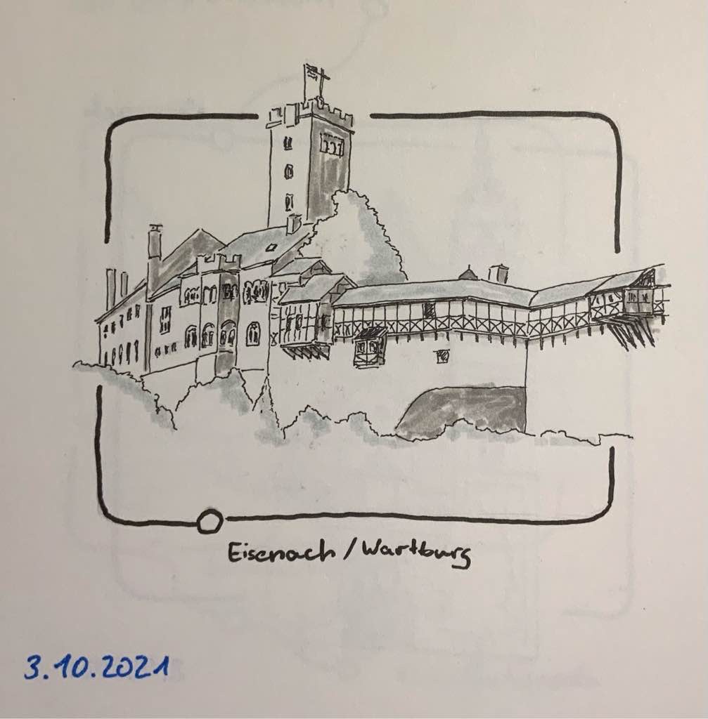 Einige Zeichnungen aus dem letzten Urlaub hatten bereits den Weg hierher geschafft. Neben den „klassischen“ Zeichnungen führten wir wieder ein geschriebenes und ein gezeichnetes Tagebuch.