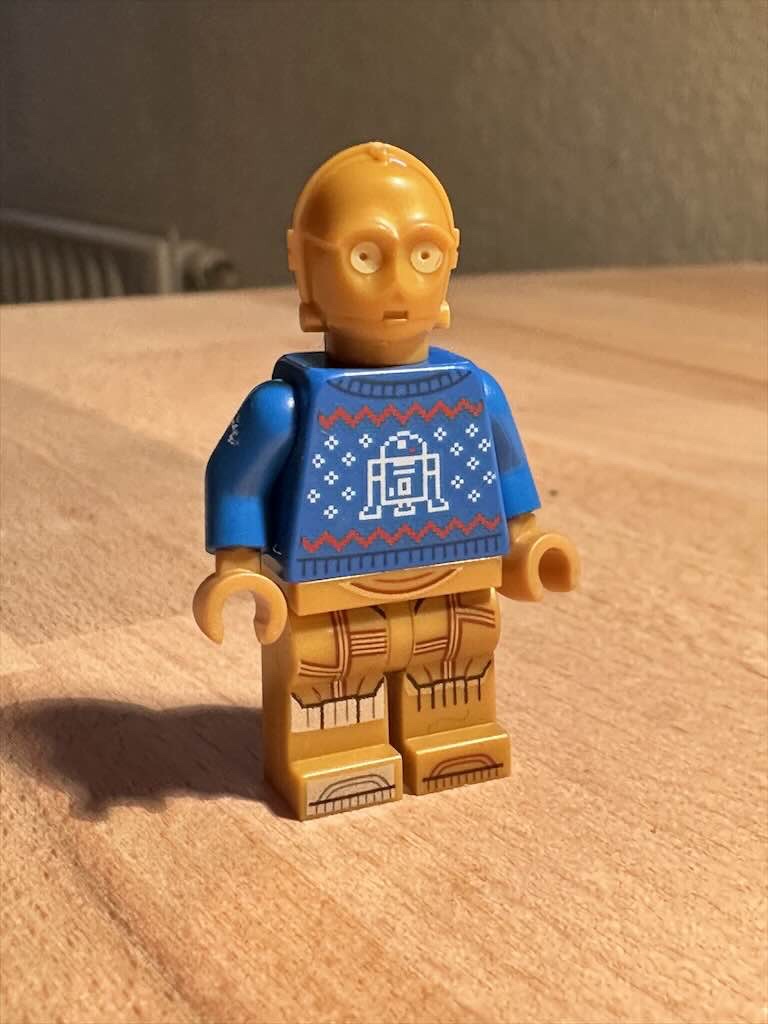 C-3PO hat sich zum Fest einen Pullover mit seinem Freund R2-D2 angezogen. Taucht R2 auch noch auf?