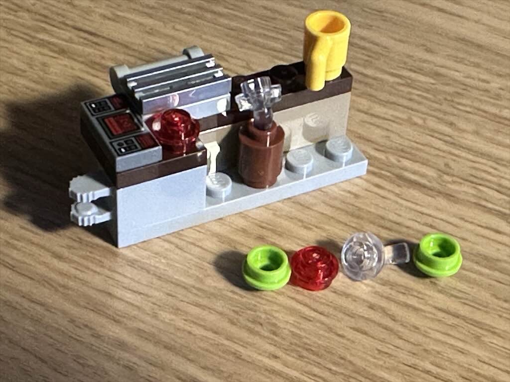 Wie zu erwarten, gab es etwas zum Bauen. Ist es eine Küche? Oder ist es eine Werkbank für Babu Frik? Ich weiß es nicht, ich stelle es erst einmal mit vor den Kalender. Im Zweifelsfall hat mein Enkel bestimmt eine Idee, was man hiermit machen kann.