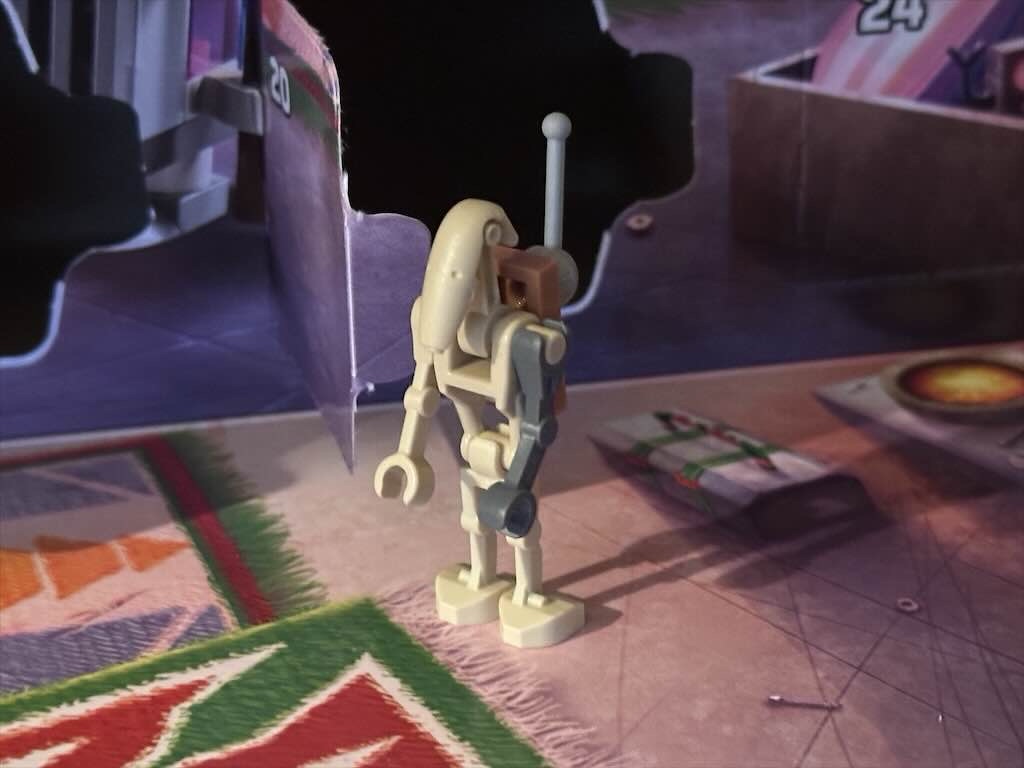 Hinter Nr. 17 wartete der obligatorische Battle Droid. Aber dieses Jahr hat er einen andersfarbigen Arm und einen Rucksack mit Antenne.