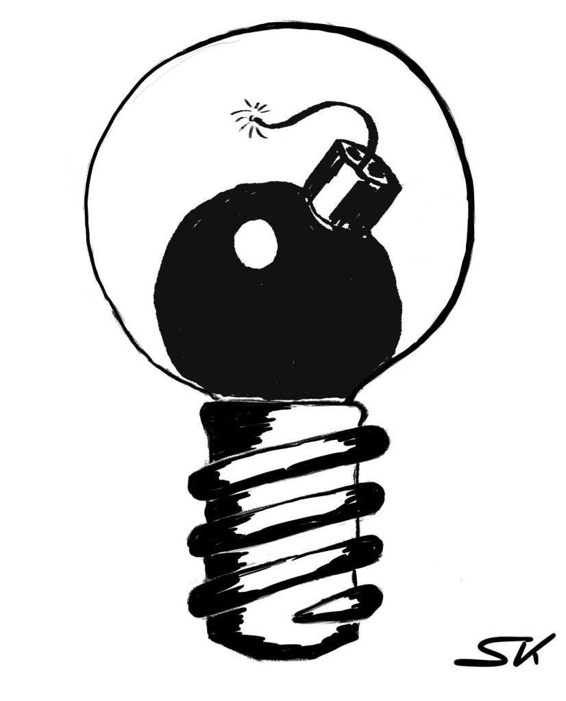 Die „Pustelinchen“ der Pusteblume brechen aus der Glühlampe aus und fliegen in die Freiheit. Einfach loslassen und weg!