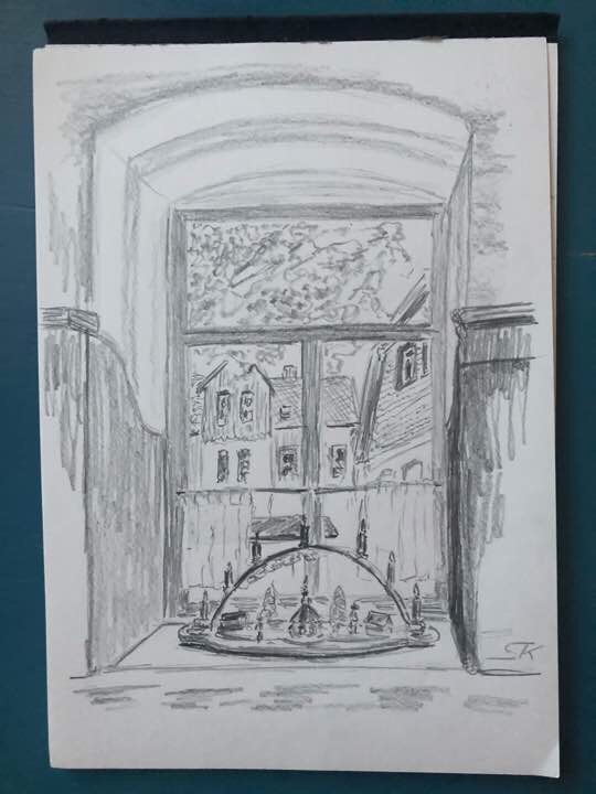 Angefangen hatte ich mit dem Zeichnen in der Burg Storkow bei heißer Schokolade und Kuchen.