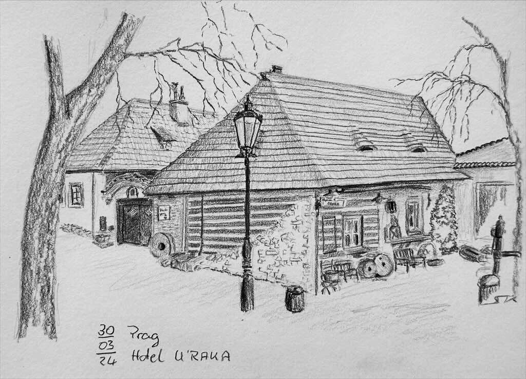 Schon das Zimmer im Romantik-Hotel U Raka lud zum Zeichnen ein. Man fühlt sich in diesem Hotel wie in einem kleinen Museum.
