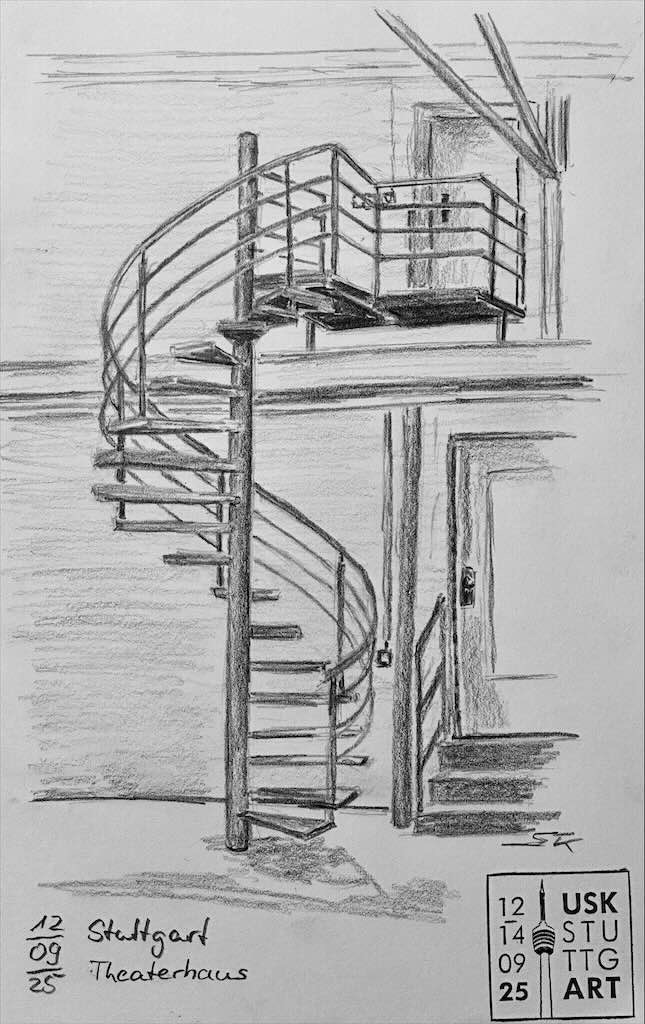 Das Original für diese Zeichnung war eine Zeichnung, die ich vor einiger Zeit von unserer Treppe im Wohnzimmer angefertigt hatte. Die dauerte ehrlich gesagt, mit 30 Minuten, länger, als ich mir am Anfang vorgenommen hatte.