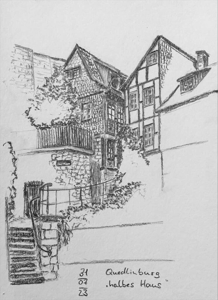 Schon lange hatte ich mir vorgenommen, diesen Blick zu zeichnen. Immer wieder hatte ich „Gründe“, es nicht zu tun. Ich traute mich nicht an dieses Motiv. Ich habe keine Ahnung, warum.