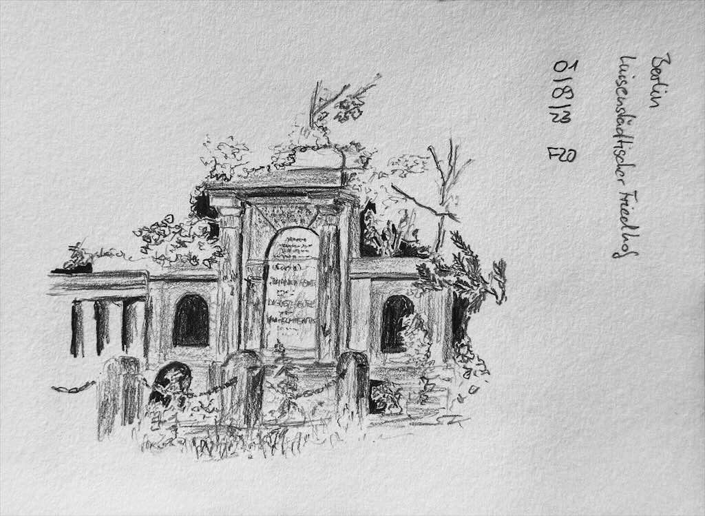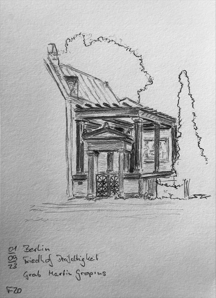 Weiter ging es an vielen anderen lohnenden Motiven vorbei in Richtung „Friedhof Dreifaltigkeit“. Dort wollte ich das Grab von Martin Gropius zeichnen.