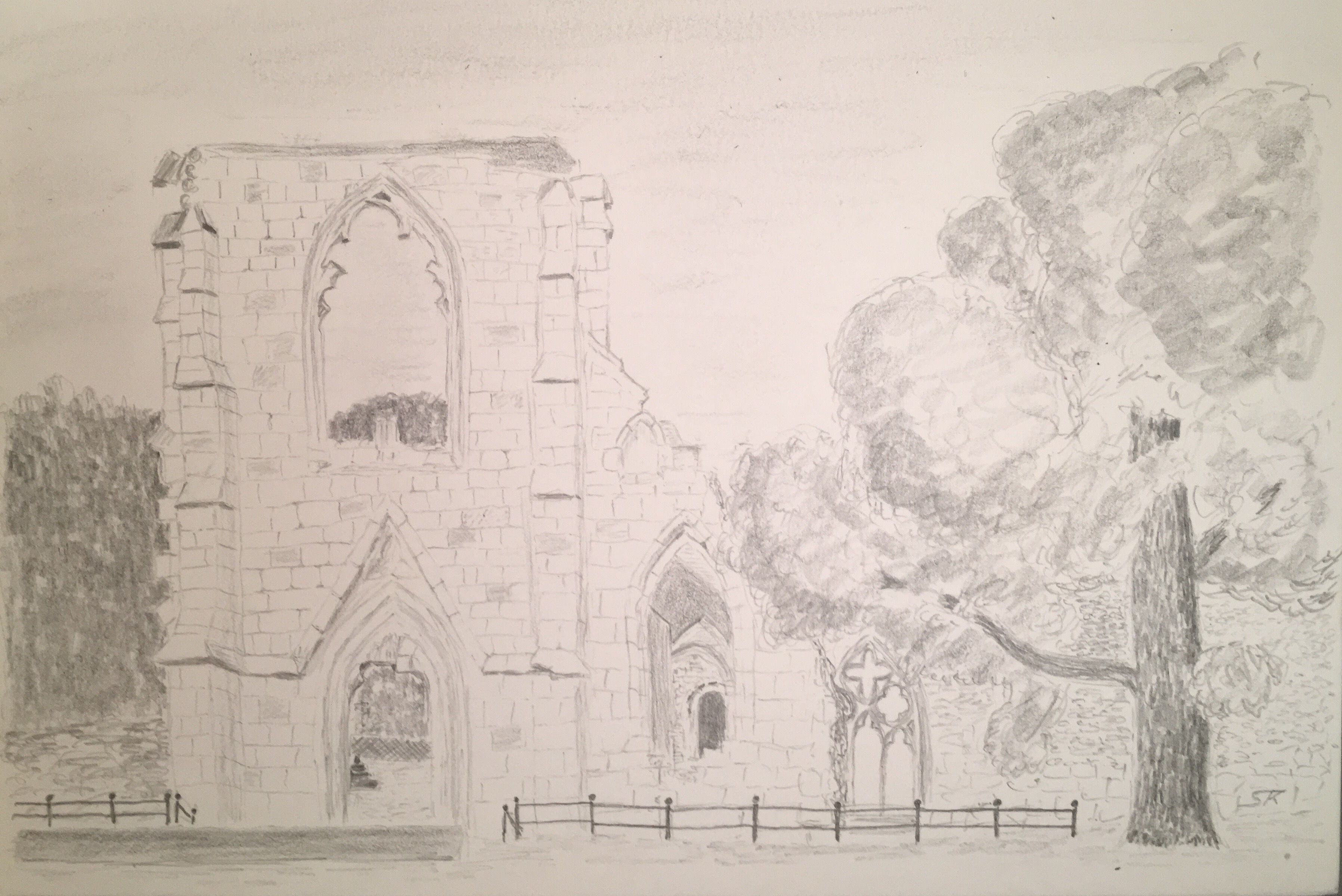 Nun, den Anfang machte die Kirche des Klosters Neuwerk. Ein schöner Blick durch die Bögen wollte aufs Papier. Das ist doch ein gutes Motiv, um an einem schnelleren Stil für mich zu arbeiten.