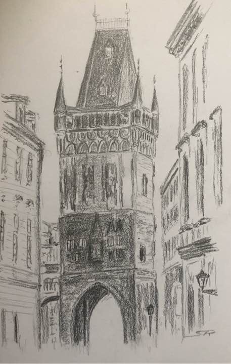 Der zeichnerische Abschluss war dann doch noch ein Torbogen. Naja, genau genommen ein Brückenbogen der Karlsbrücke.