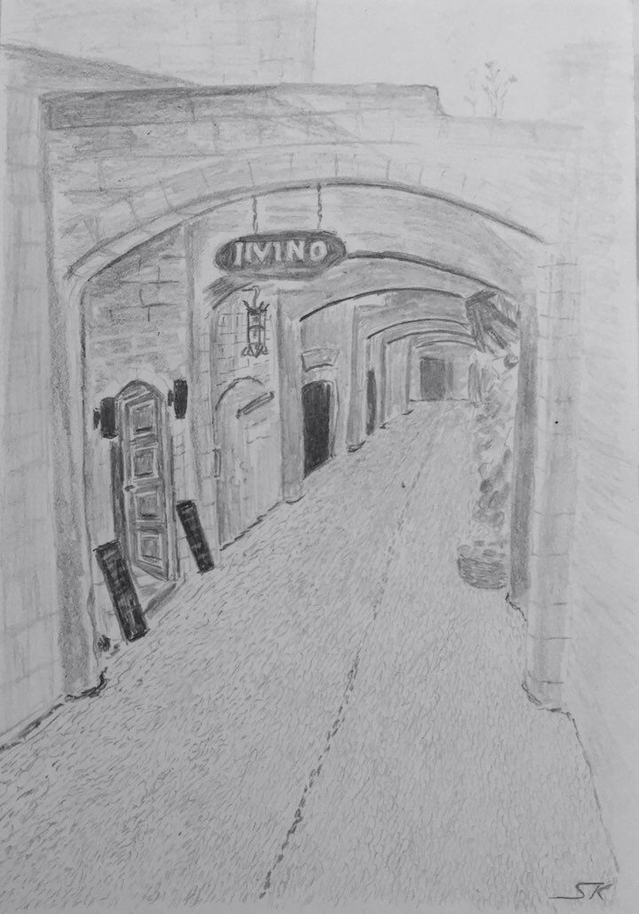 Besonders beeindruckend finde ich die Mauerbögen zwischen den Häusern. Aber auch die vielen Pflanzen, die in Ritzen und auf Vorsprüngen wachsen, tragen ihren Teil zum Gesamtbild bei. Nicht zu vergessen, gefühlt tausende von Katzen. Die haben es jedoch nicht auf meine Zeichnung geschafft.