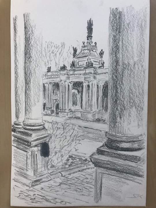 Einer dieser alten Bäume stand mir Modell für diese Zeichnung. Trotz des Windes hatte er schön stillgehalten.