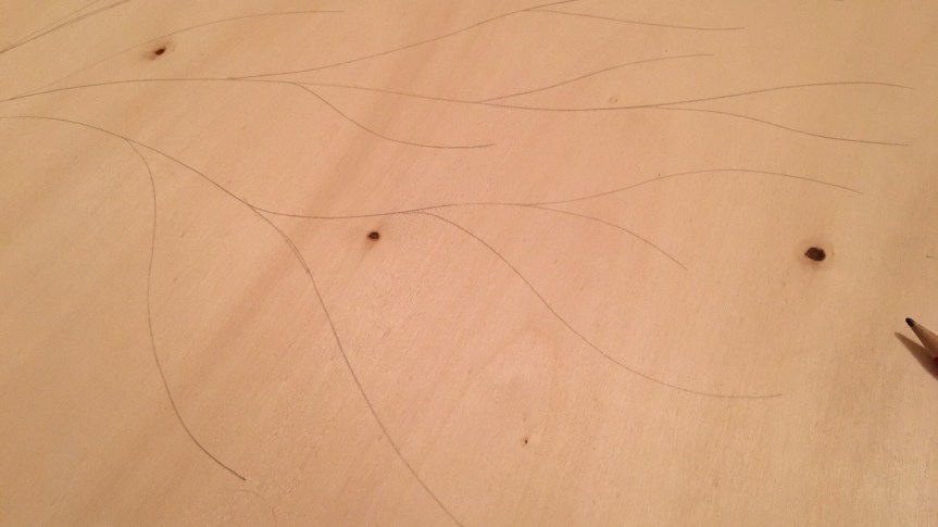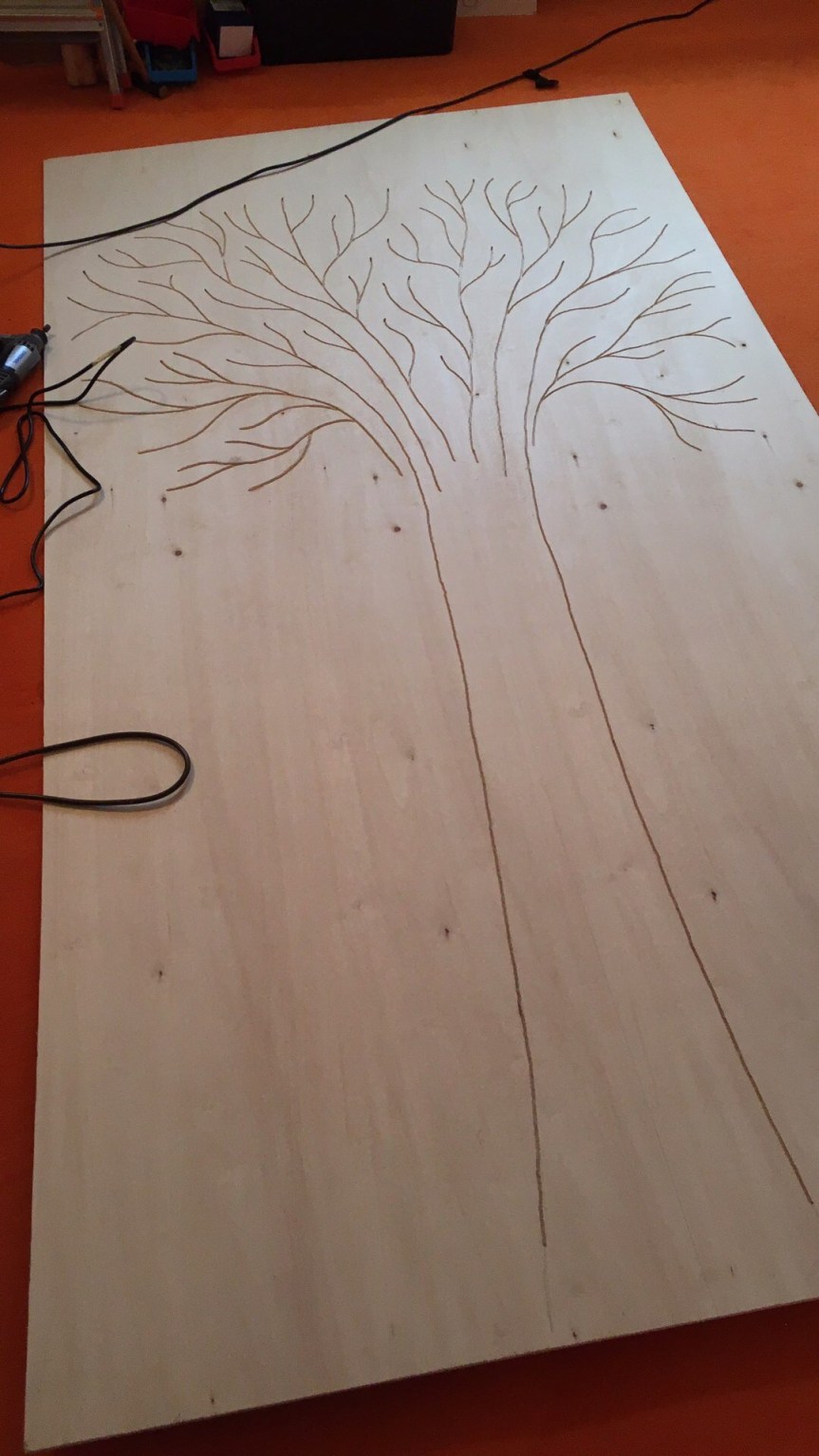 Jetzt wird es ernst. Die Platten und2ef81e2e-3a73-4f6f-89bb-451a3ae3678el0001-img_4298-jpg Leisten liegen im Zimmer. Den Baum wollte ich erst möglichst genau übertragen. Ich hatte sogar schon mit dem Einzeichnen eines 10cm-Rasters angefangen. Das war aber recht schnell verworfen.