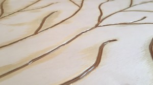 Die Zahl 72 im Produktnamen steht für die Zeit, die für das Aushärten erforderlich ist. Nach 24 Stunden fängt es an zu gelieren. Das bedeutet aber, dass das Werkstück absolut plan liegen muss. Ich hatte leider eine kaum zu messende Schräge – prompt bildeten sich kleine Pfützen und die Nuten für den Stamm des Baumes waren im Endeffekt nicht mehr bis zum Rand gefüllt. Das schaue ich mir nochmal in Ruhe an, wenn das Licht montiert ist. Sollte das nicht zu sehen sein, bleibt das so.