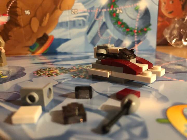 Nachdem gestern eine Minifigur im Kalender war, ist heute wieder ein Modell an der Reihe. Ich denke, dass es sich hierbei um Anakins Jedi-Starfighter handelt. Der runde weiße Stein ist bestimmt R2.