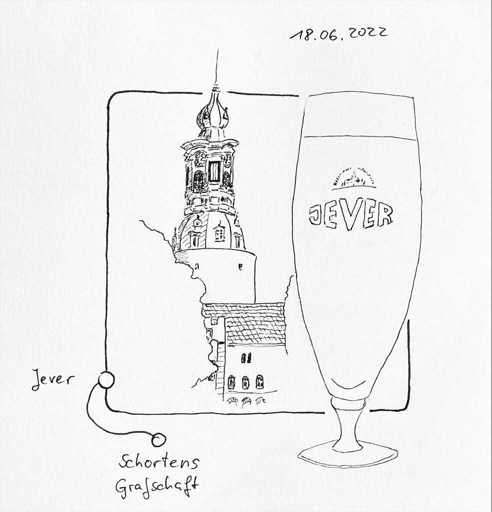 Ein Schluck Bier gefällig? Jever kannten wir bis dahin nur von grünen Flaschen. Jetzt kennen wir auch die Stadt. Sehr gut essen kann man im Haus der Getreuen.