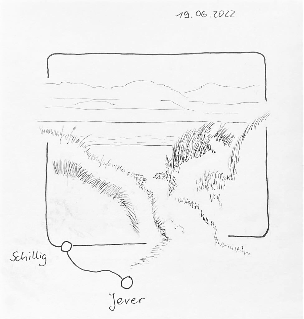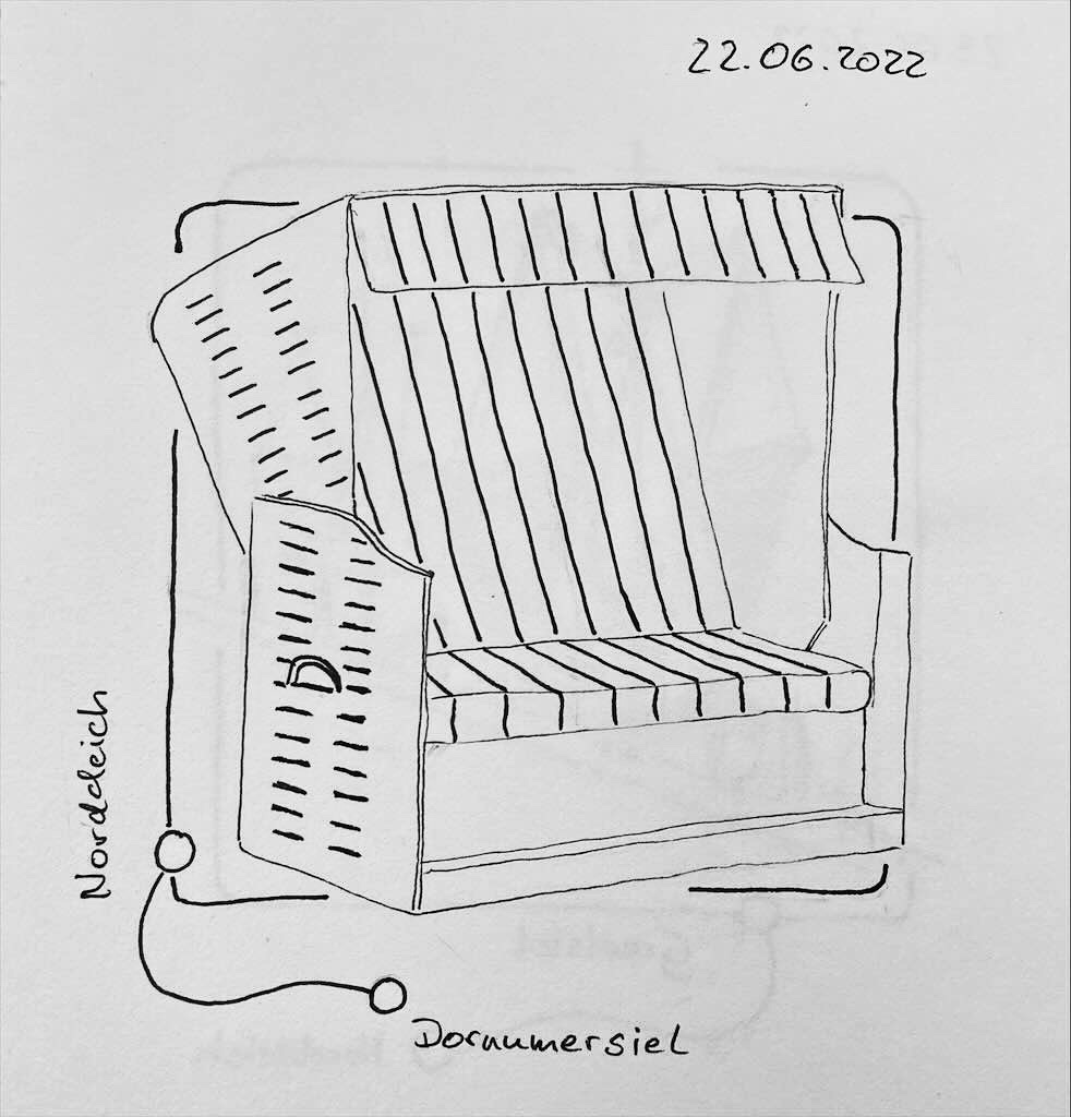 In Norddeich gab es dann nach einen Eis im Strandkorb einen Ausflug mit den Rädern nach Norden. Wir sind also nach Süden gefahren, um nach Norden zu kommen. Verwirrend! Vor 4 Jahren waren wir schon einmal in Norden zu Gast und ich schenkte dem Hotel damals zum Abschied zwei Zeichnungen. Leider hatte das Hotel zu, die Zeichnungen konnten wir aber an der Wand hängen sehen. Das macht mich ein klein wenig stolz.